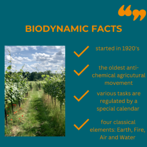 Biodynamic wine does not have additives, and the use of chemical fertilizers and pesticides is forbidden in the vineyards where biodynamic grapes are grown.  No additional-sulphites may be added to the label if necessary.
