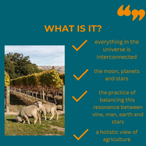 Biodynamic wine refers to wines produced using a holistic approach that integrates organic farming principles with specific biodynamic practices.