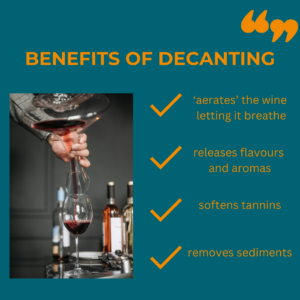 Most wines benefit from decanting which allows them to ‘open up’ or ‘aerate’.